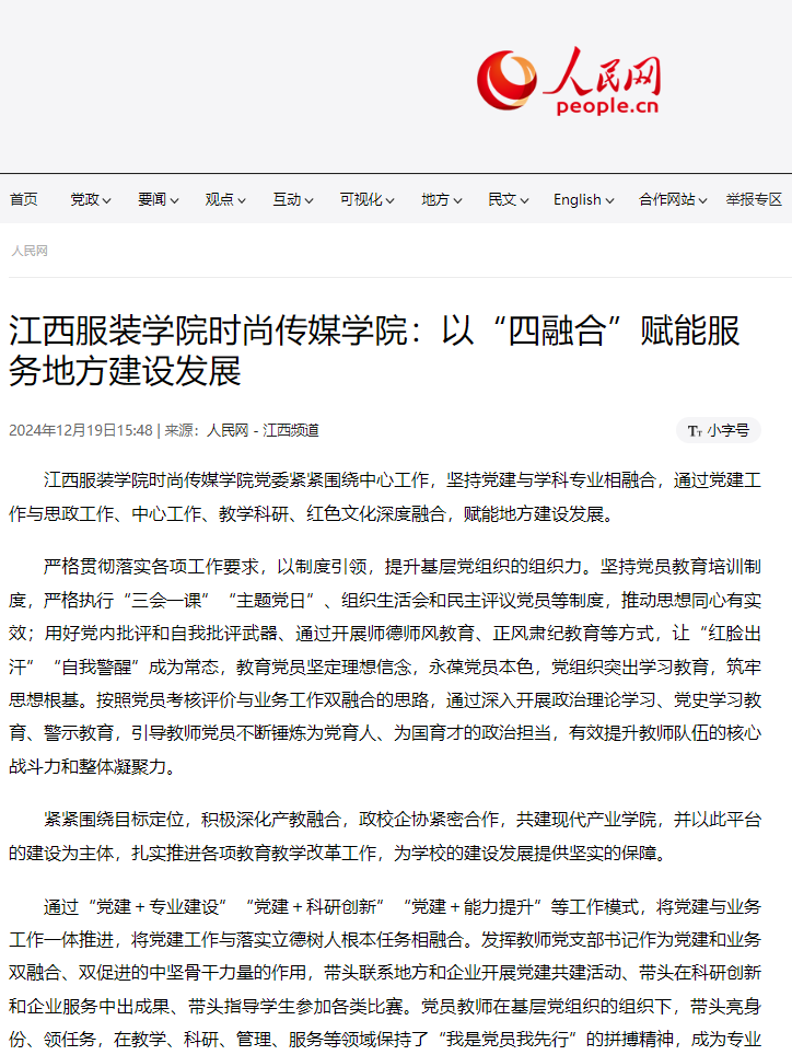 人民网:江西服装学院时尚传媒学院:以“四融合”赋能服务地方建设发展