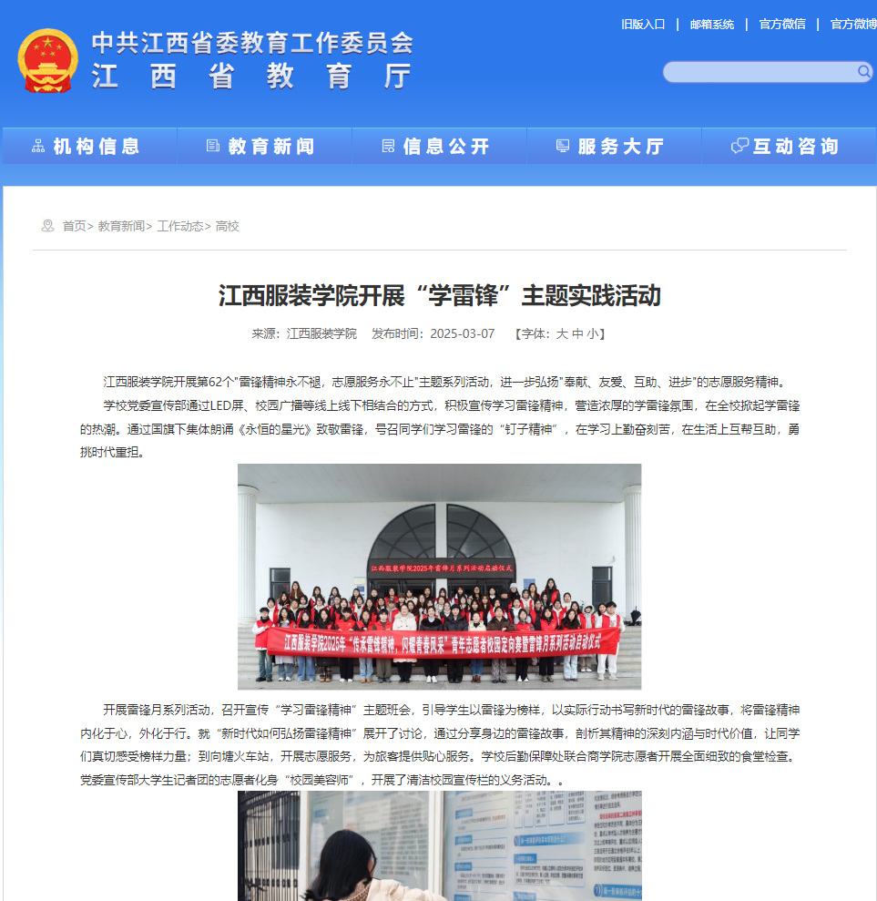 江西省教育厅官网:江西服装学院开展“学雷锋”主题实践活动