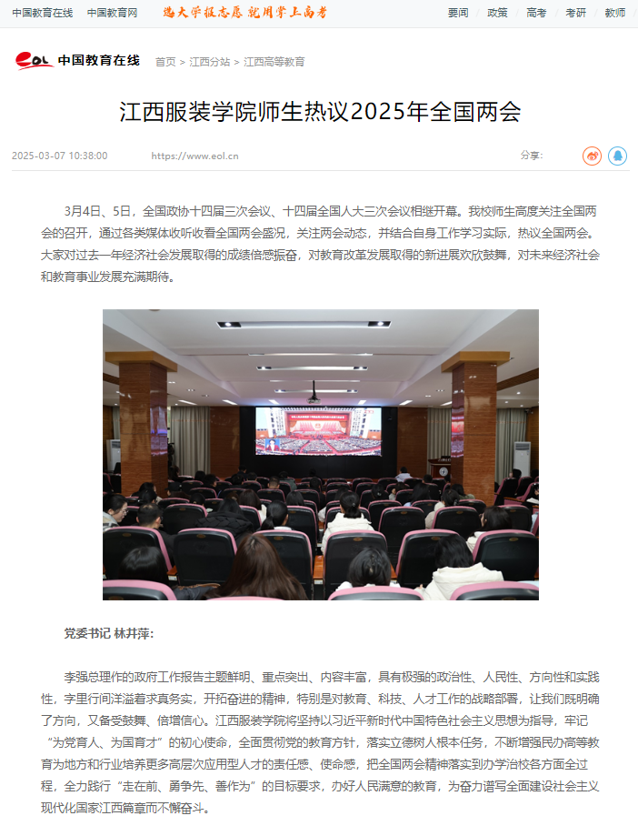 中国教育在线:江西服装学院师生热议2025年全国两会