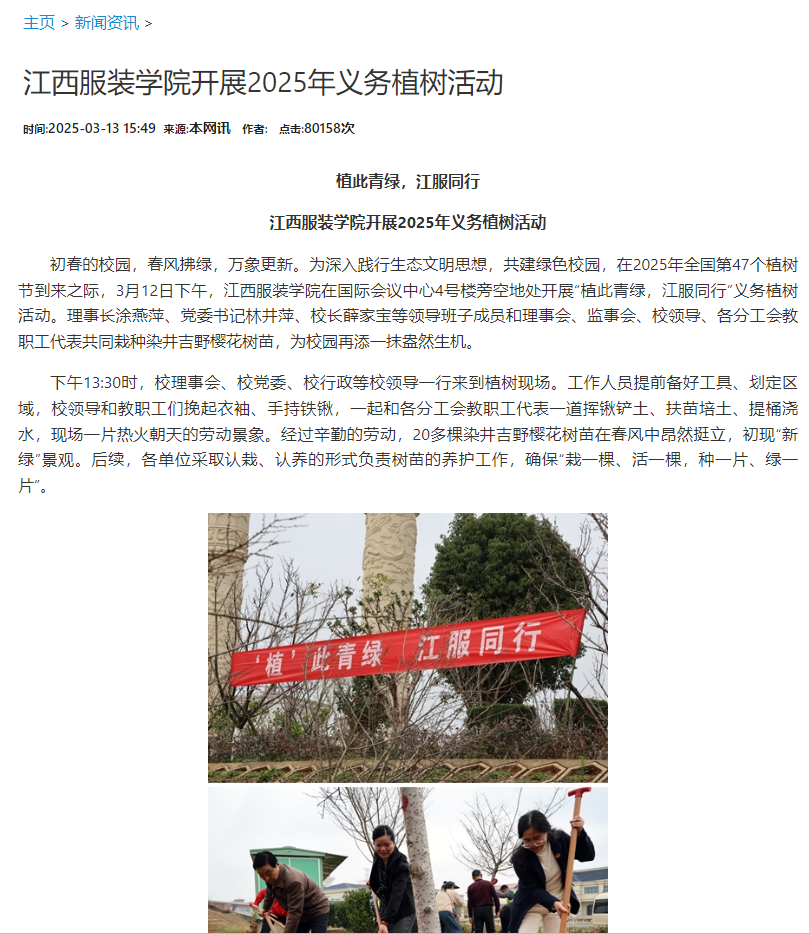 下一篇中国新闻网:江西服装学院开展2025年义务植树活动