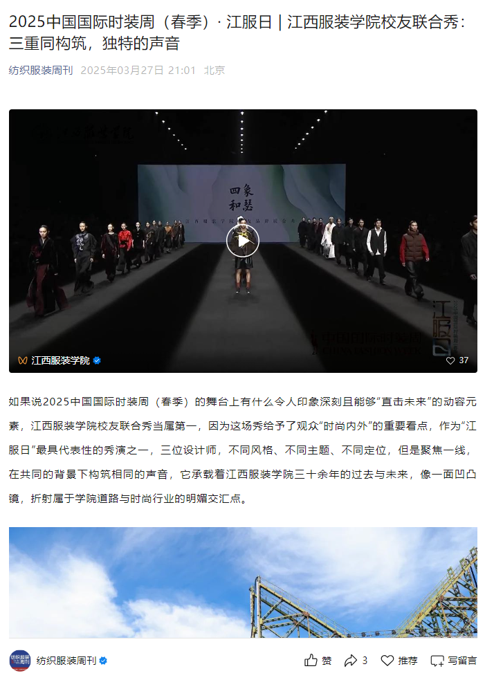 纺织服装周刊:2025中国国际时装周(春季)·江服日|江西服装学院校友联合秀:三重同构筑,独特的声音