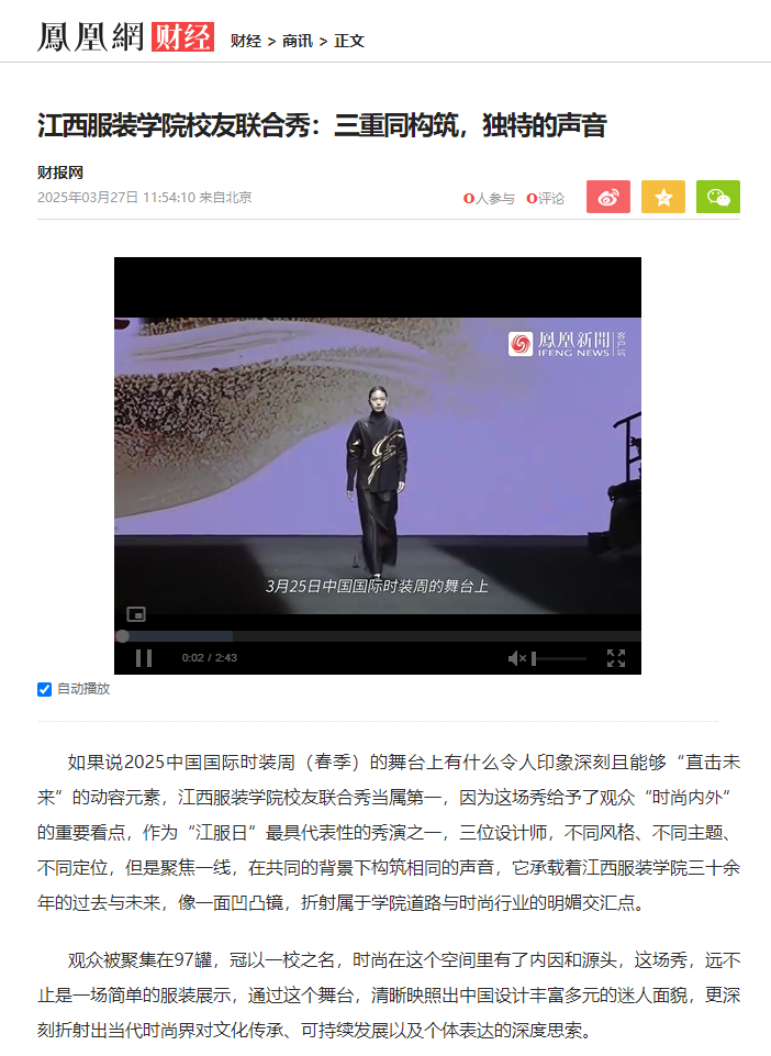凤凰网:江西服装学院校友联合秀:三重同构筑,独特的声音