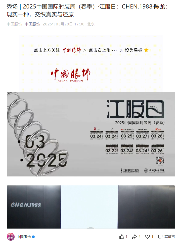 中国服饰:秀场|2025中国国际时装周(春季)·江服日:CHEN.1988·陈龙:现实一种,交织真实与还原