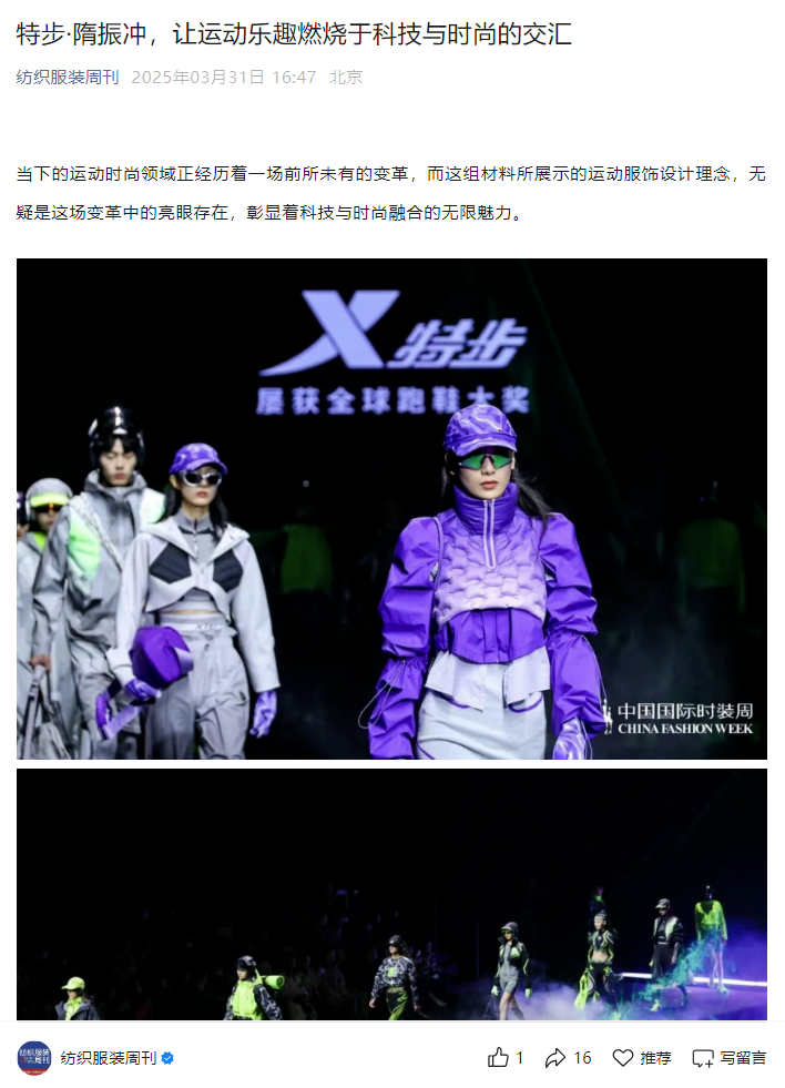 纺织服装周刊:特步·隋振冲,让运动乐趣燃烧于科技与时尚的交汇