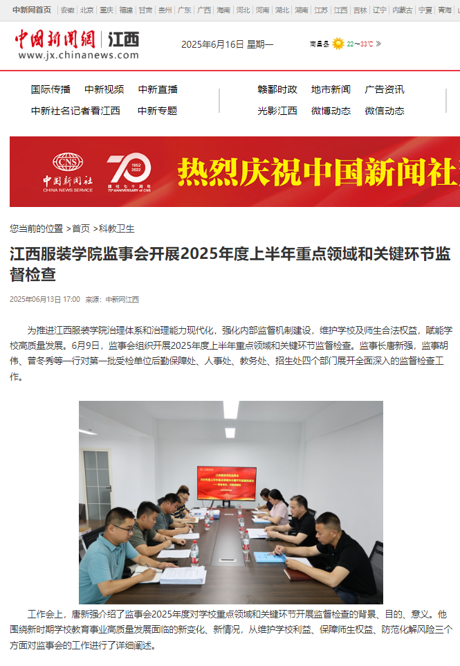 中国新闻网:江西服装学院监事会开展2025年度上半年重点领域和关键环节监督检查