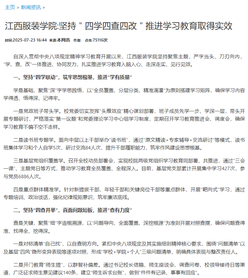 新华瞭望:江西服装学院:坚持"四学四查四改"推进学习教育取得实效