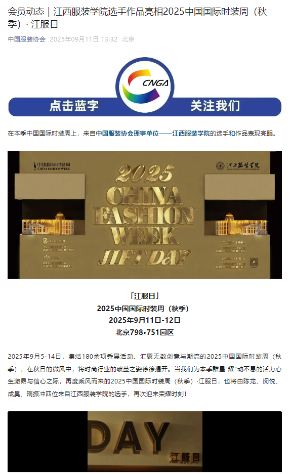 中国服装协会:会员动态|江西服装学院选手作品亮相2025中国国际时装周(秋季)· 江服日