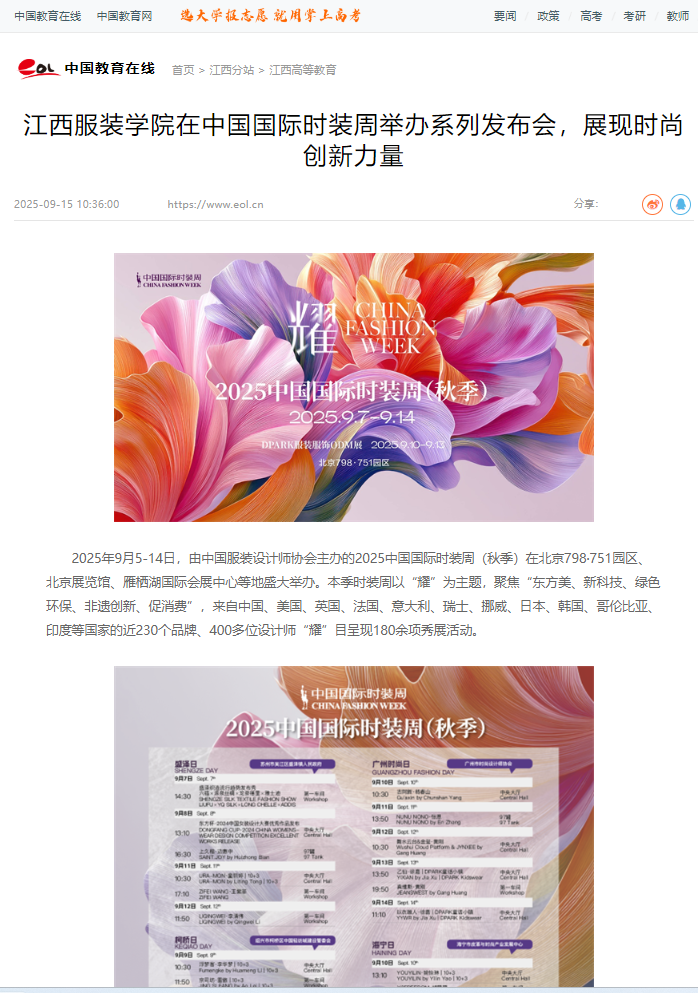 中国教育在线:江西服装学院在中国国际时装周举办系列发布会,展现时尚创新力量