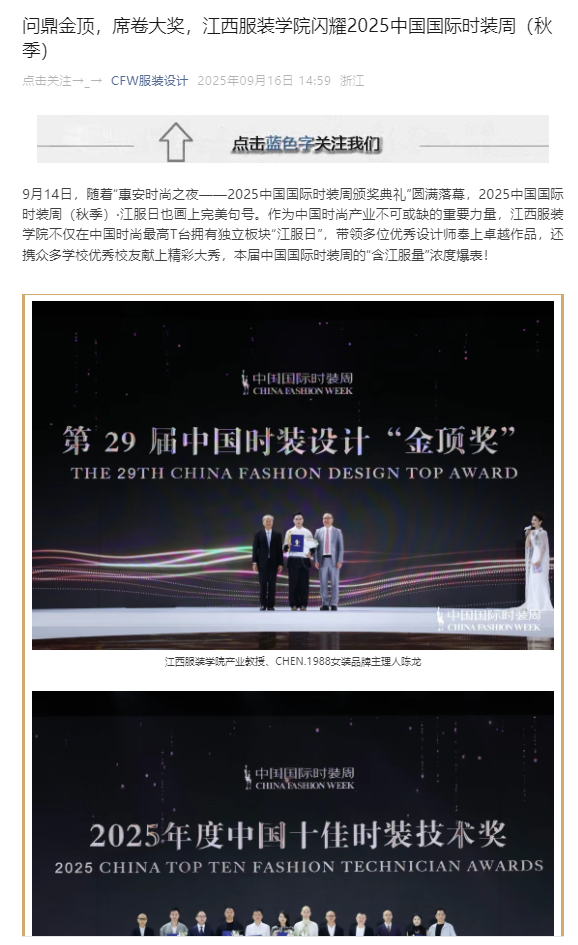 CFW服装设计:问鼎金顶,席卷大奖,江西服装学院闪耀2025中国国际时装周(秋季)