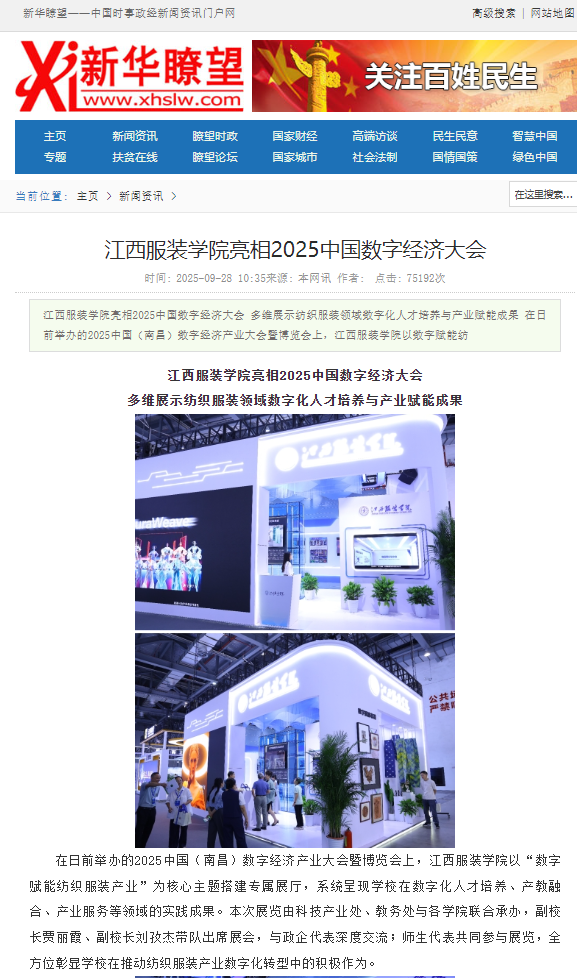 新华瞭望:江西服装学院亮相2025中国数字经济大会 多维展示纺织服装领域数字化人才培养与产业赋能成果