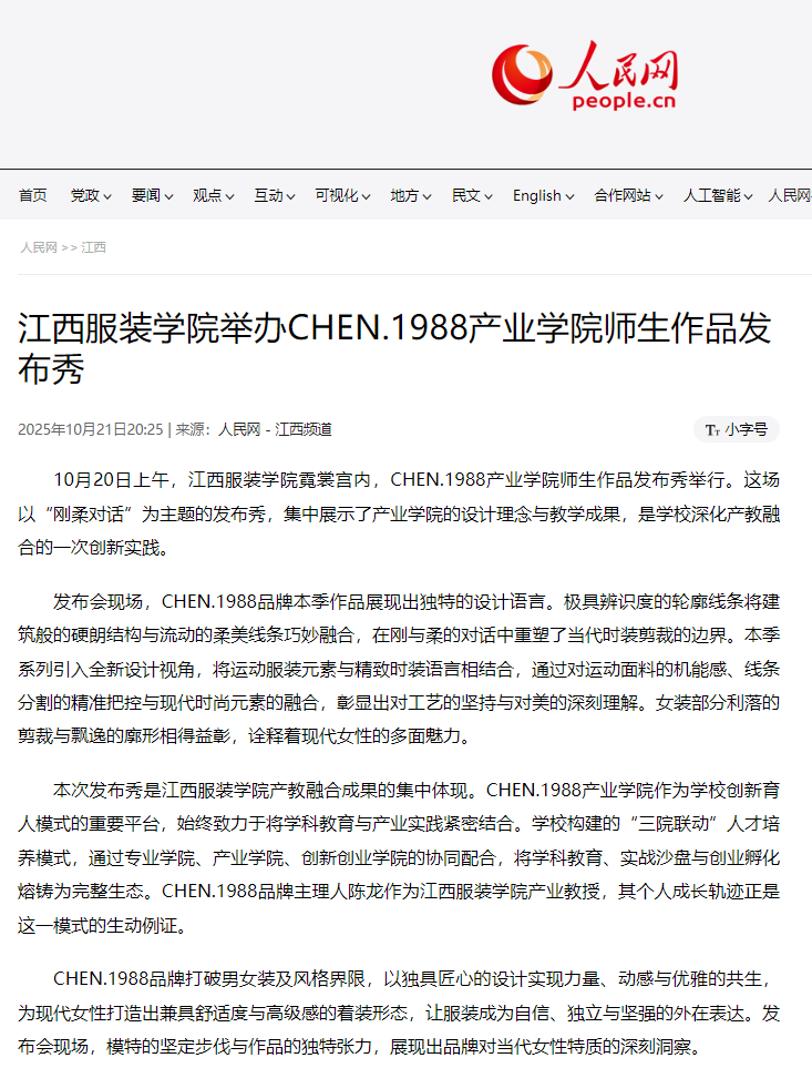 人民网:江西服装学院举办CHEN.1988产业学院师生作品发布秀