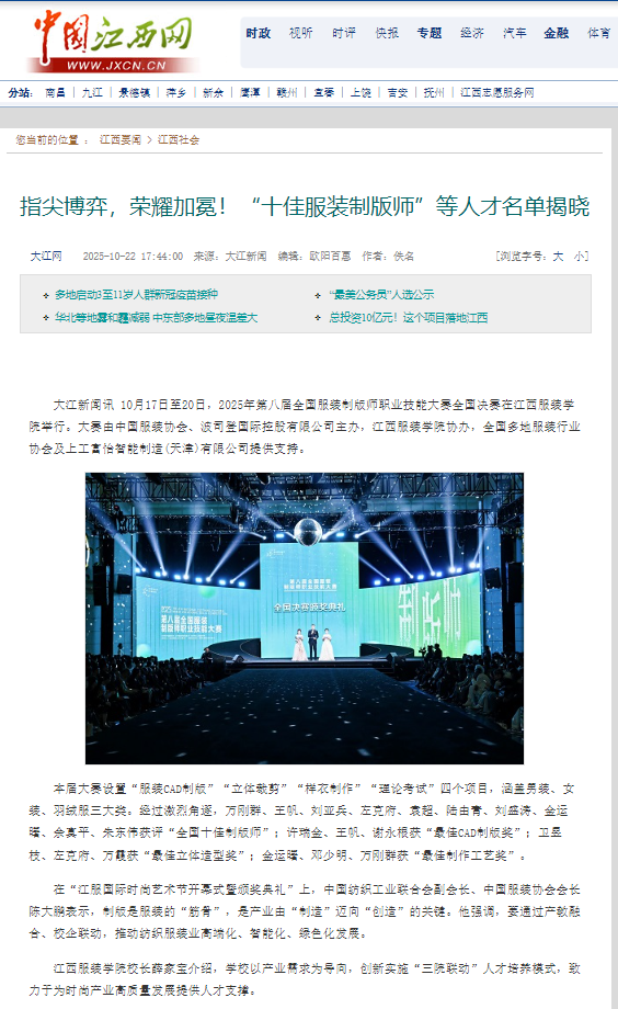 中国江西网:指尖博弈,荣耀加冕!“十佳服装制版师”等人才名单揭晓