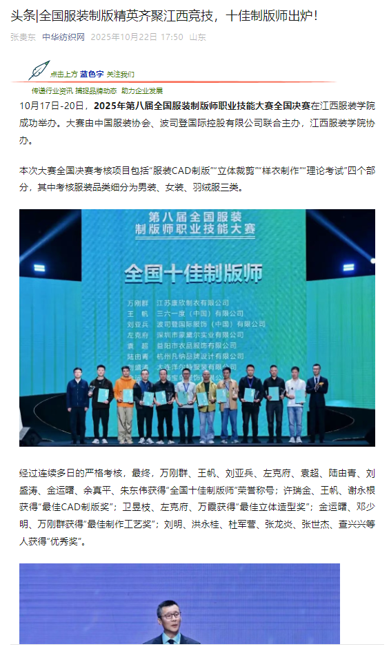 中华纺织网:头条|全国服装制版精英齐聚江西竞技,十佳制版师出炉!