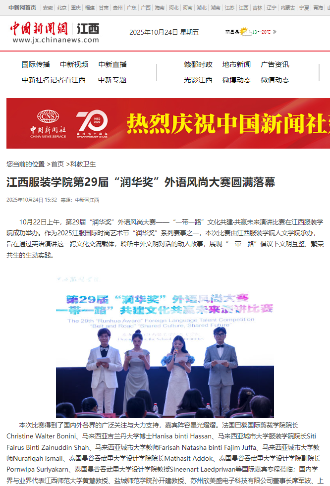 中国新闻网:江西服装学院第29届“润华奖”外语风尚大赛圆满落幕