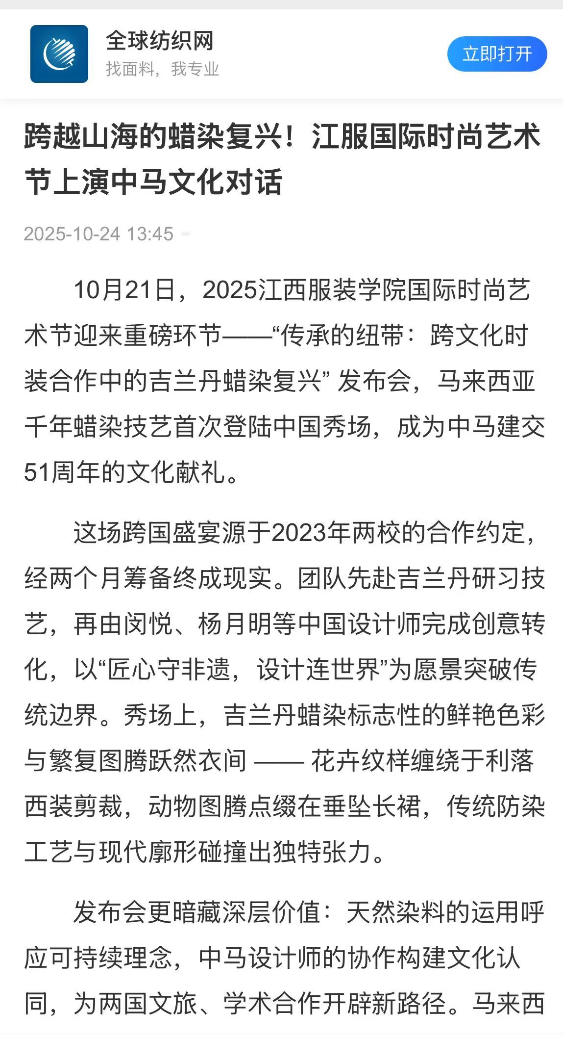 全球纺织网:跨越山海的蜡染复兴!江服国际时尚艺术节上演中马文化对话