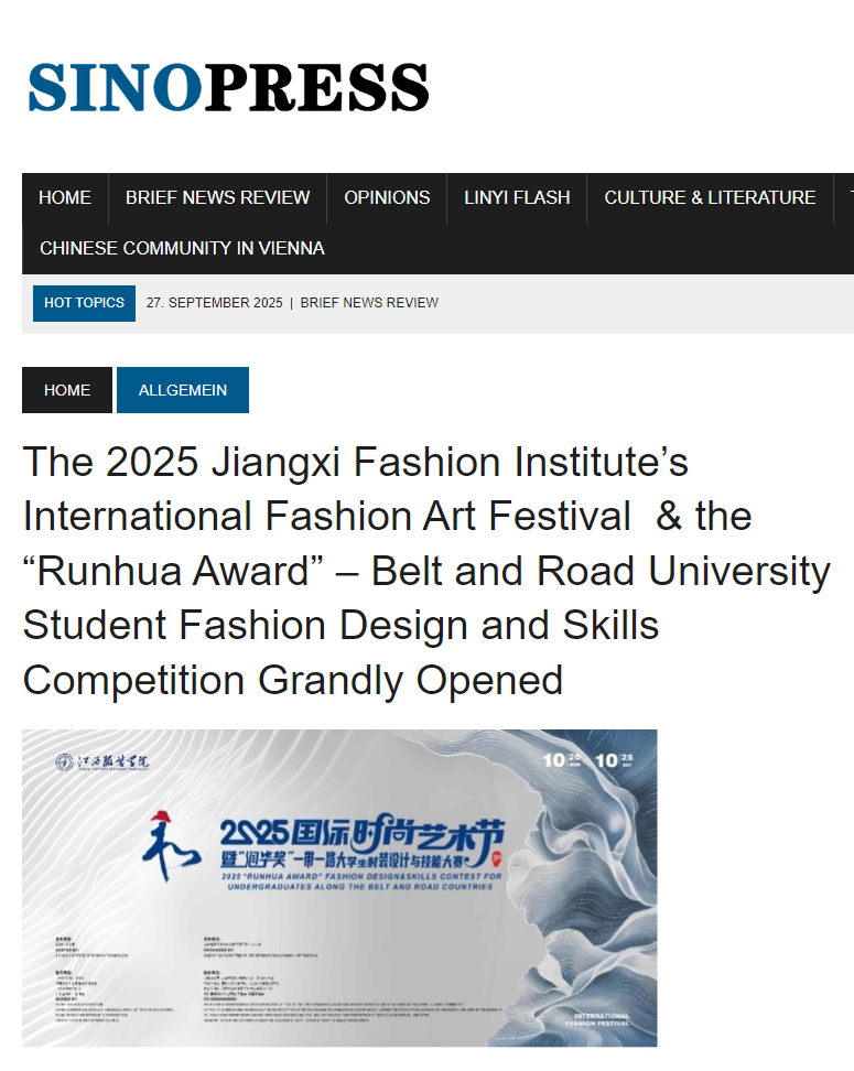 奥地利维也纳媒体SINOPRESS:2025江西服装学院国际时尚艺术节暨“润华奖“一带一路大学生时装设计与技能大赛盛大启幕