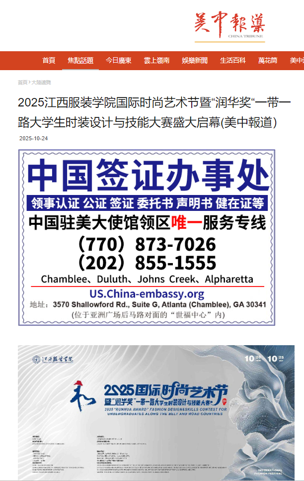 美中报道:2025江西服装学院国际时尚艺术节暨“润华奖“一带一路大学生时装设计与技能大赛盛大启幕