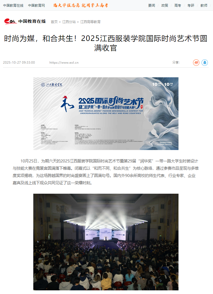 中国教育在线:时尚为媒,和合共生!2025江西服装学院国际时尚艺术节圆满收官