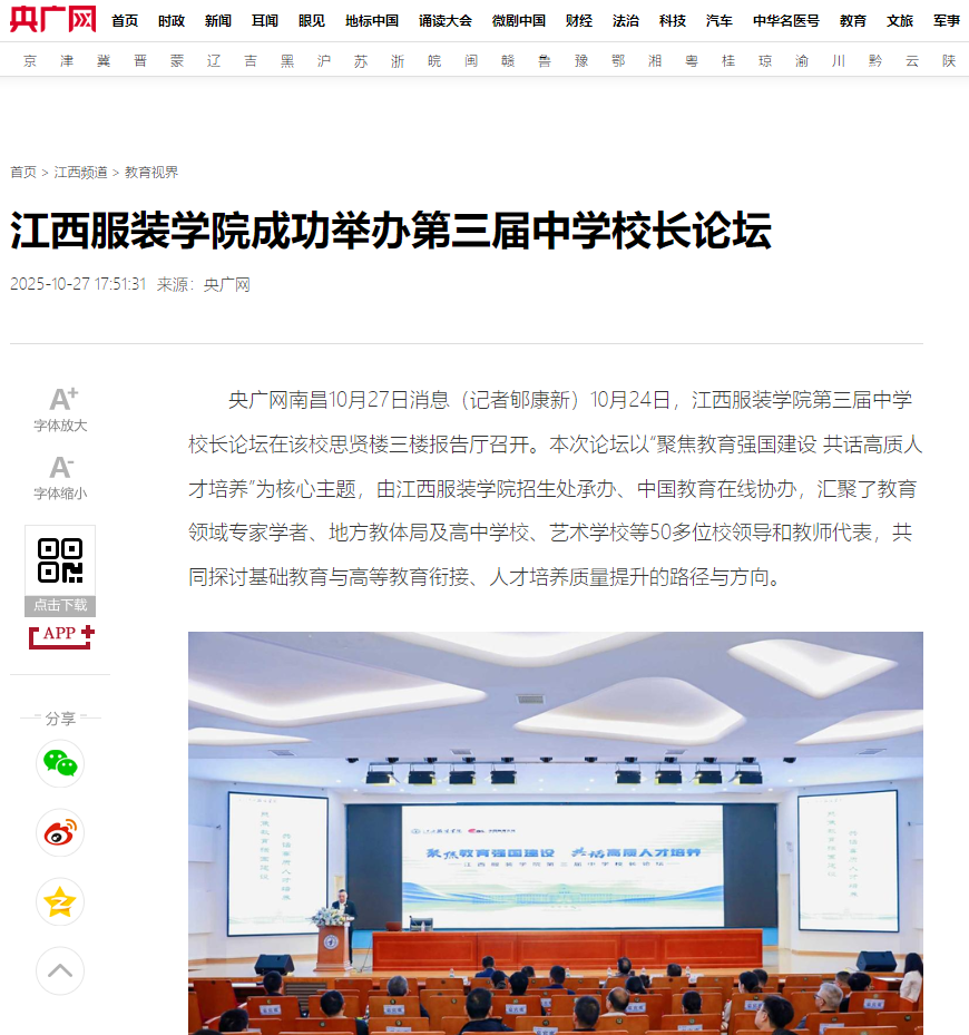 央广网:江西服装学院成功举办第三届中学校长论坛