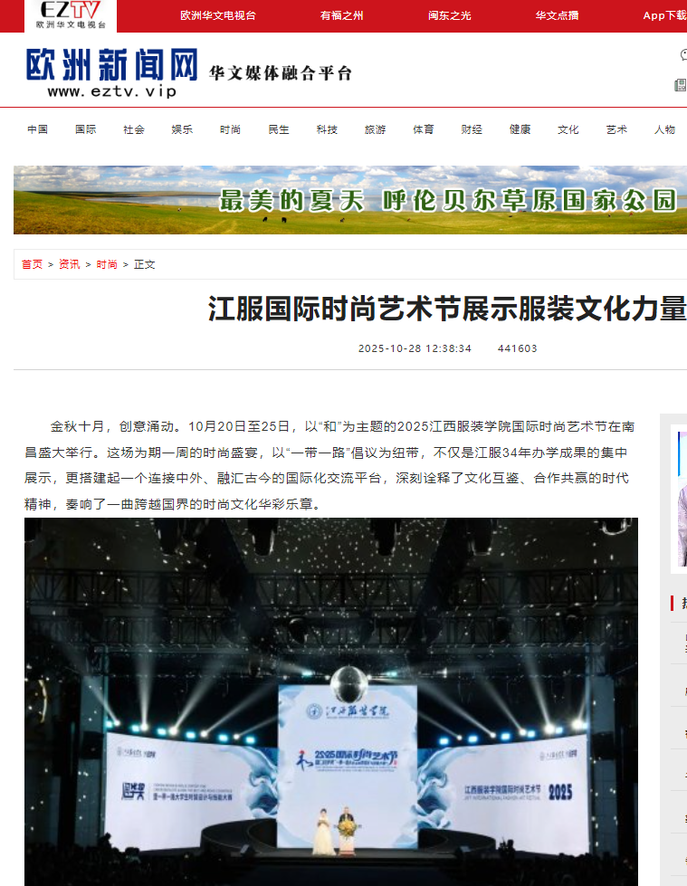 欧洲新闻网:江服国际时尚艺术节展示服装文化力量