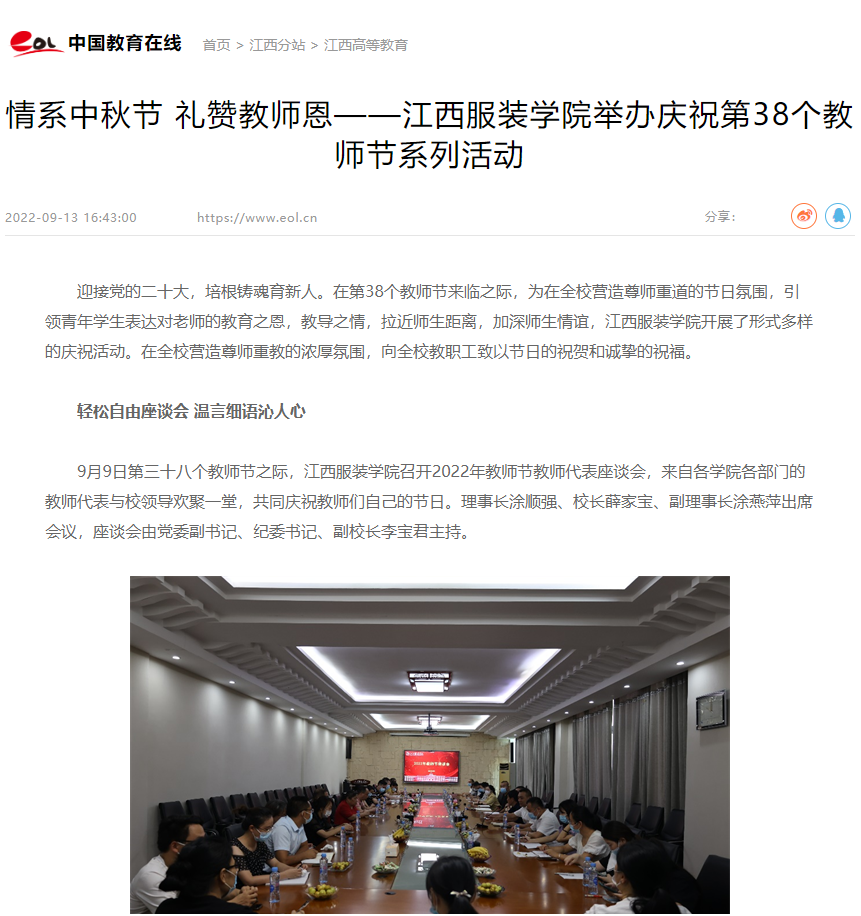 中国教育在线:情系中秋节 礼赞教师恩——江西服装学院举办庆祝第38个教师节系列活动