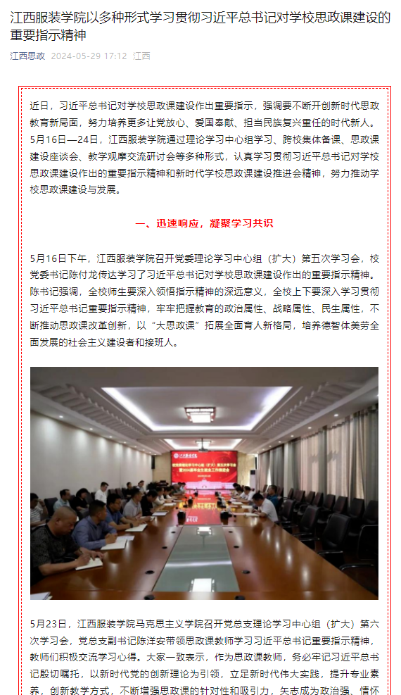 江西思政:江西服装学院以多种形式学习贯彻习近平总书记对学校思政课建设的重要指示精神
