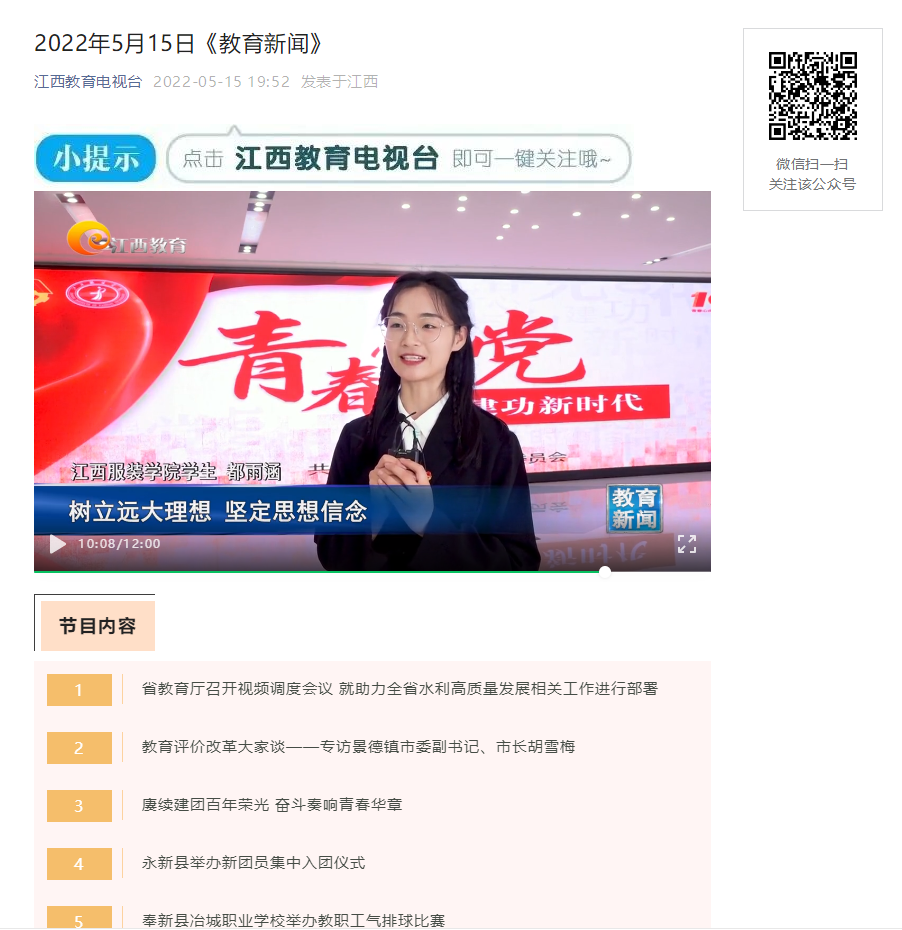 新闻链接:江西教育电视台:2022年5月15日《教育新闻》