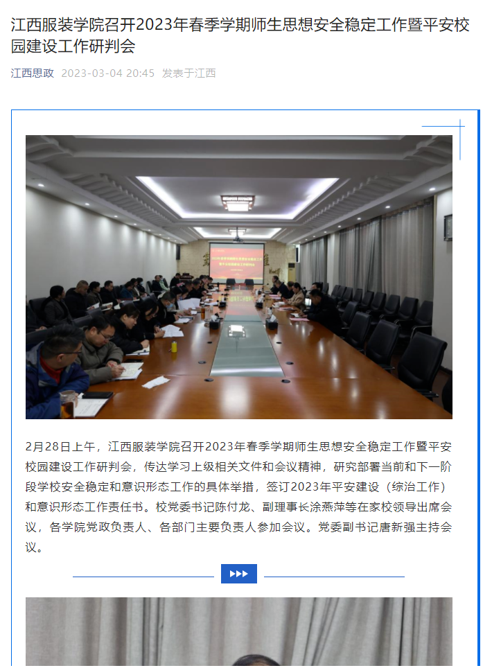 江西思政:江西服装学院召开2023年春季学期师生思想安全稳定工作暨平安校园建设工作研判会