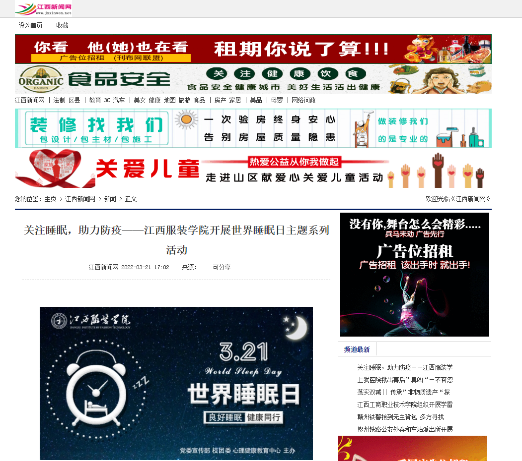 江西新闻网:关注睡眠,助力防疫——江西服装学院开展世界睡眠日主题系列活动