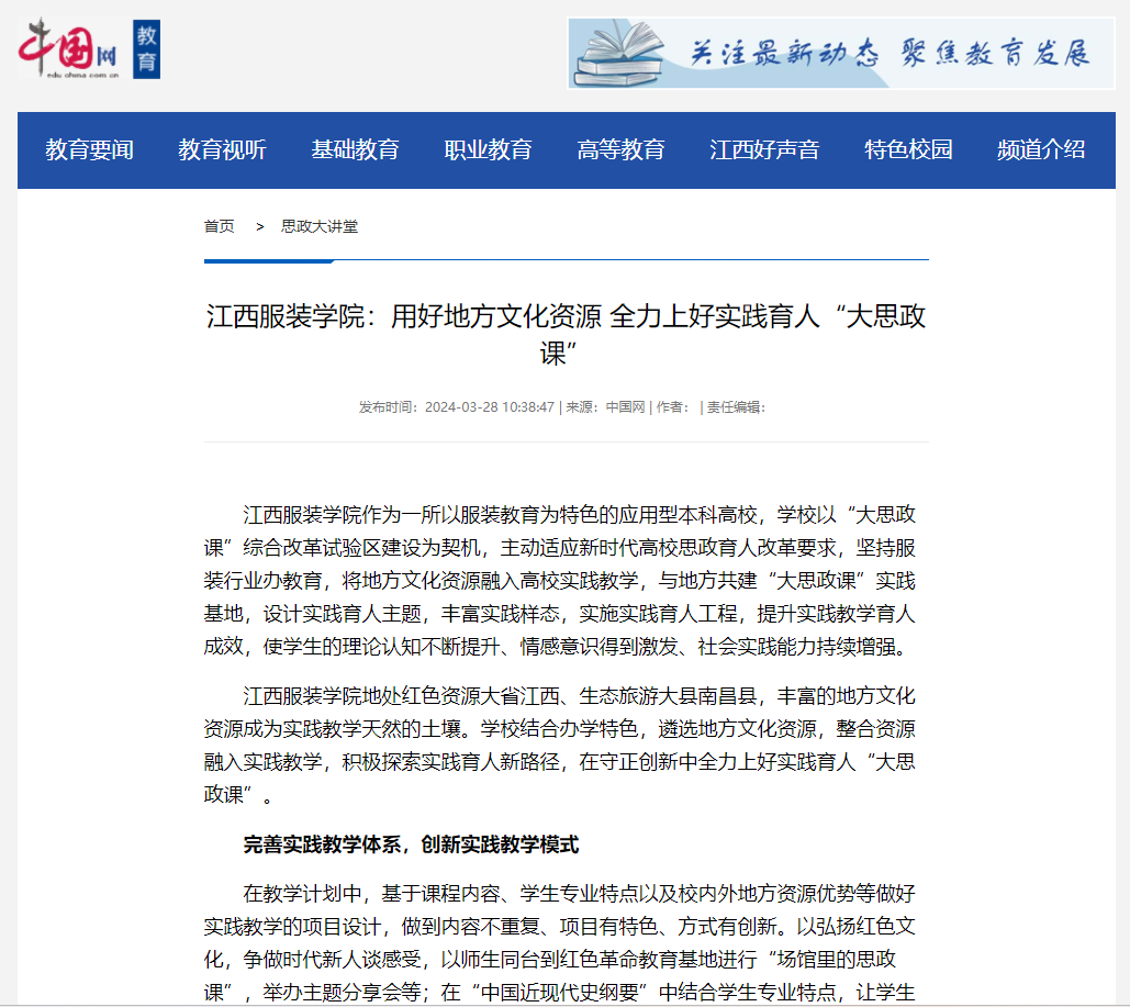 中国网:江西服装学院:用好地方文化资源 全力上好实践育人“大思政课”