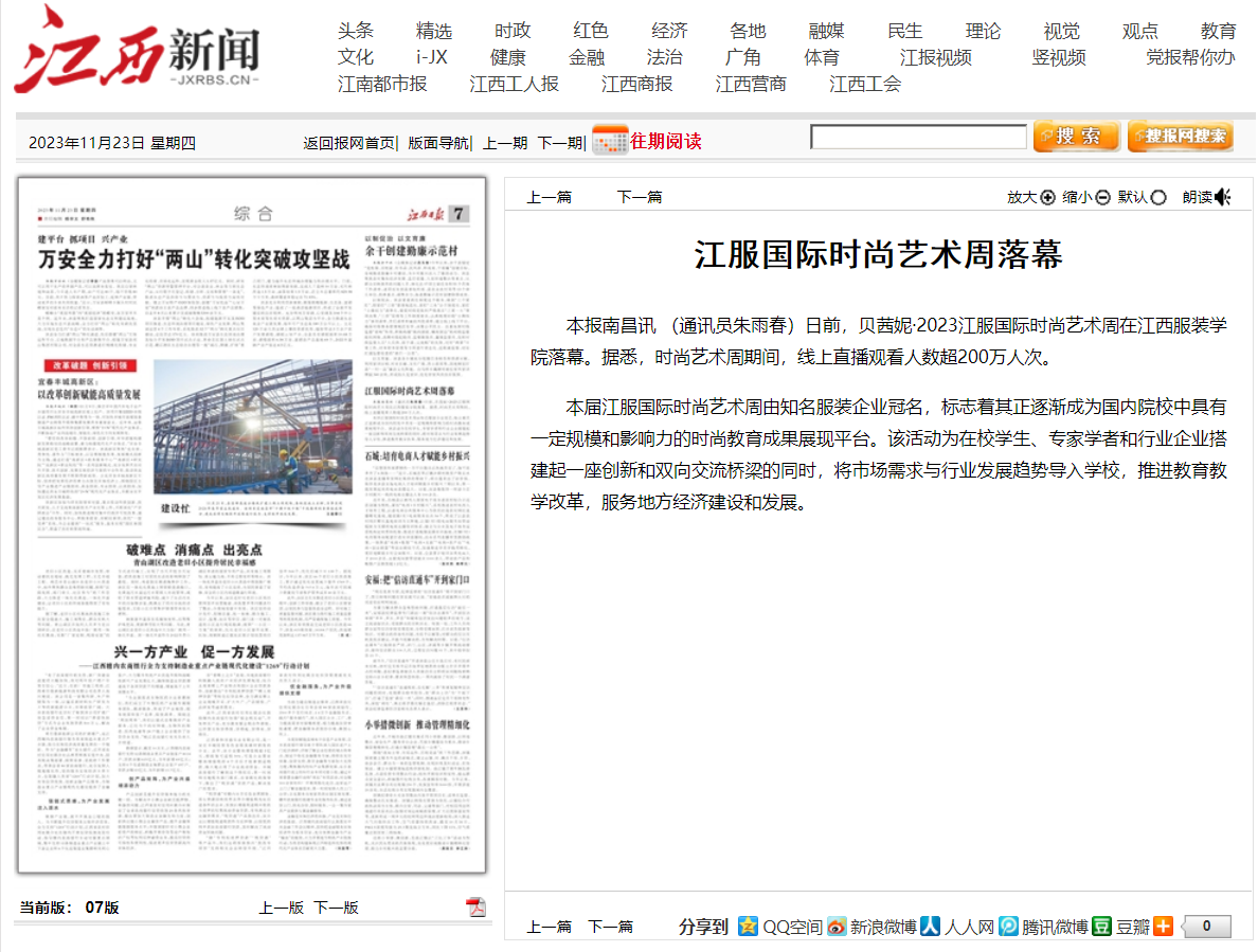 江西日报刊登:江服国际时尚艺术周落幕