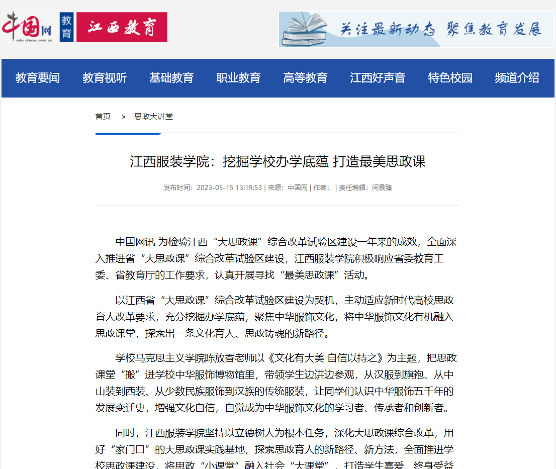 中国网:江西服装学院:挖掘学校办学底蕴 打造最美思政课