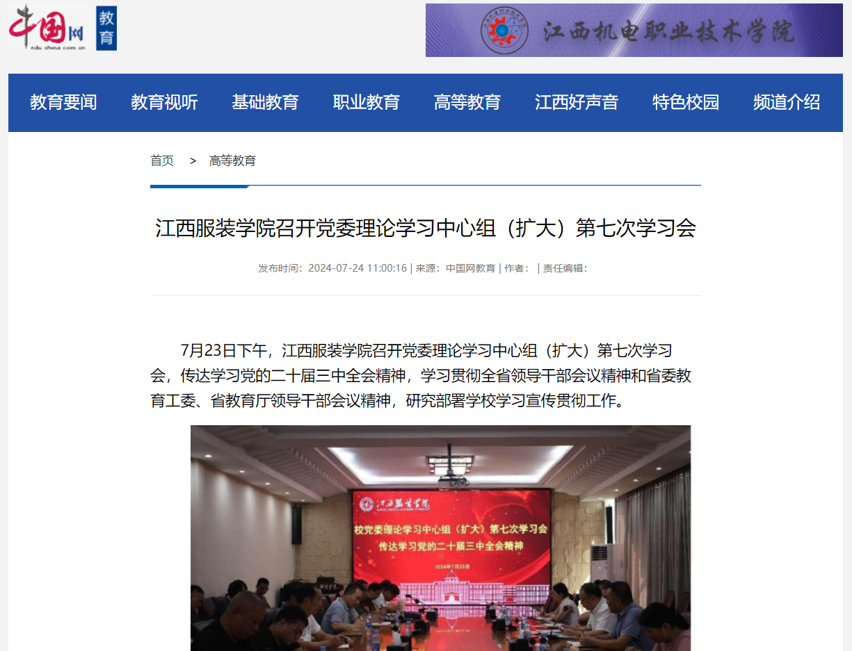 下一篇中国教育在线:江西服装学院召开党委理论学习中心组(扩大)第七次学习会 传达学习党的二十届三中全会精神