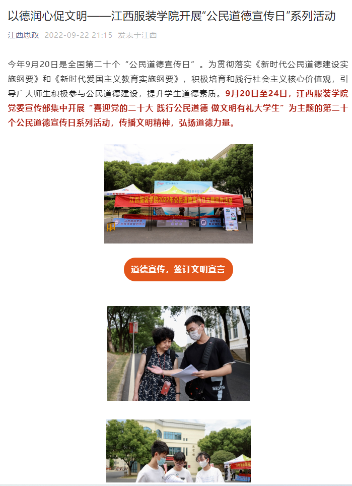 江西思政:以德润心促文明——江西服装学院开展“公民道德宣传日”系列活动