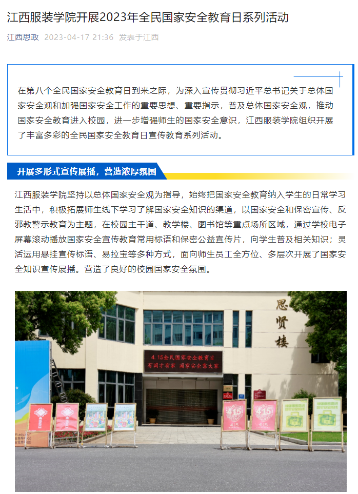江西思政:江西服装学院开展2023年全民国家安全教育日系列活动