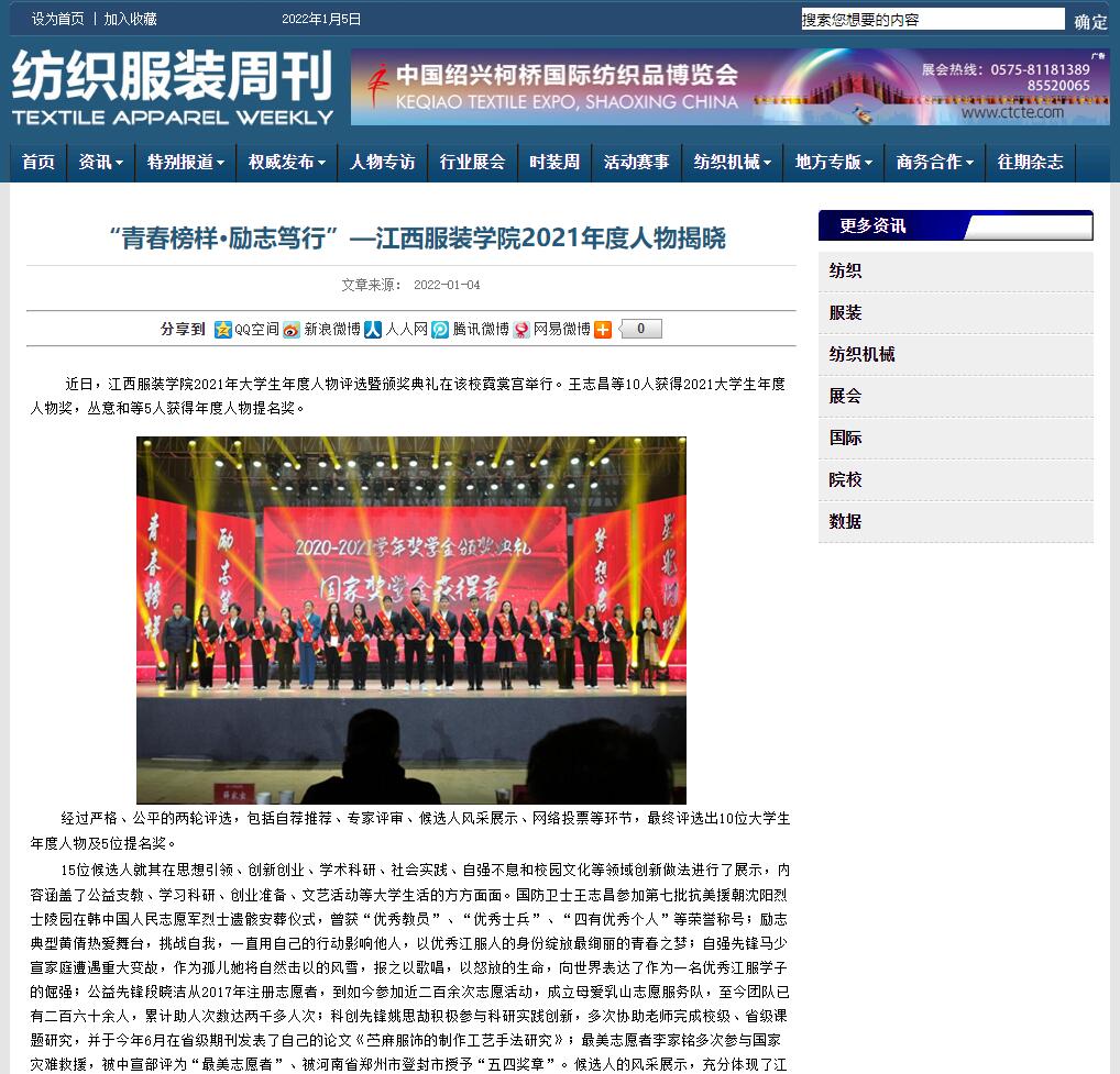 纺织服装周刊:“青春榜样•励志笃行”—江西服装学院2021年度人物揭晓