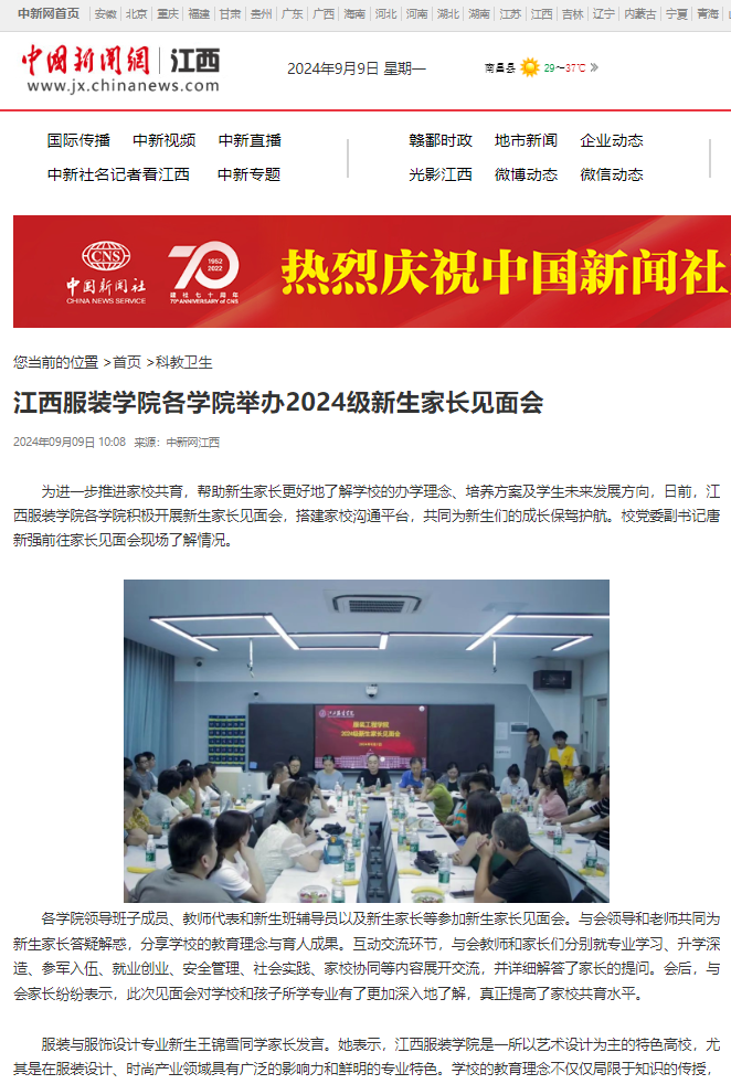 中国新闻网:江西服装学院各学院举办2024级新生家长见面会