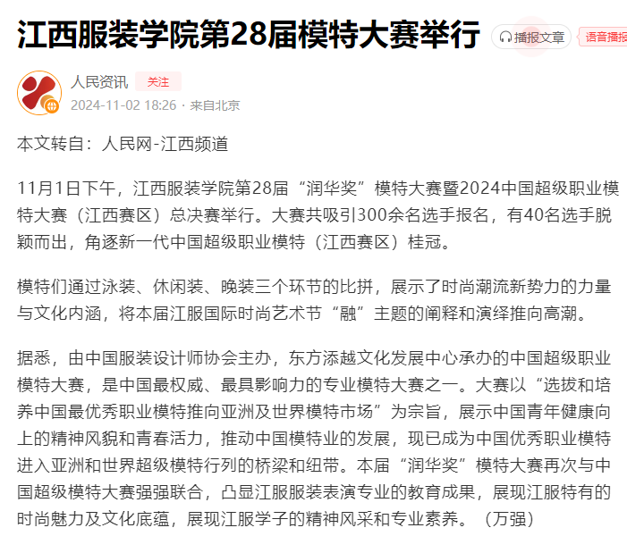 上一篇人民网:江西服装学院第28届模特大赛举行