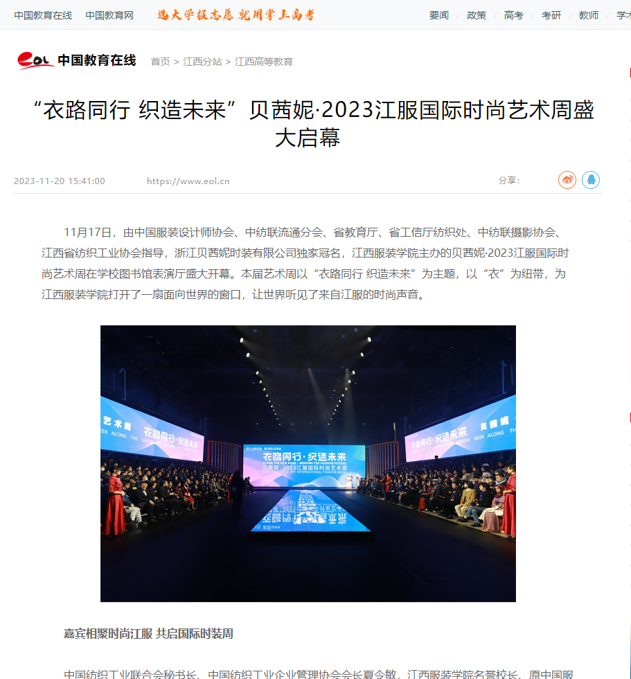 中国教育在线:“衣路同行 织造未来”贝茜妮·2023江服国际时尚艺术周盛大启幕