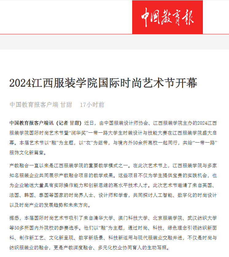 中国教育报:2024江西服装学院国际时尚艺术节开幕