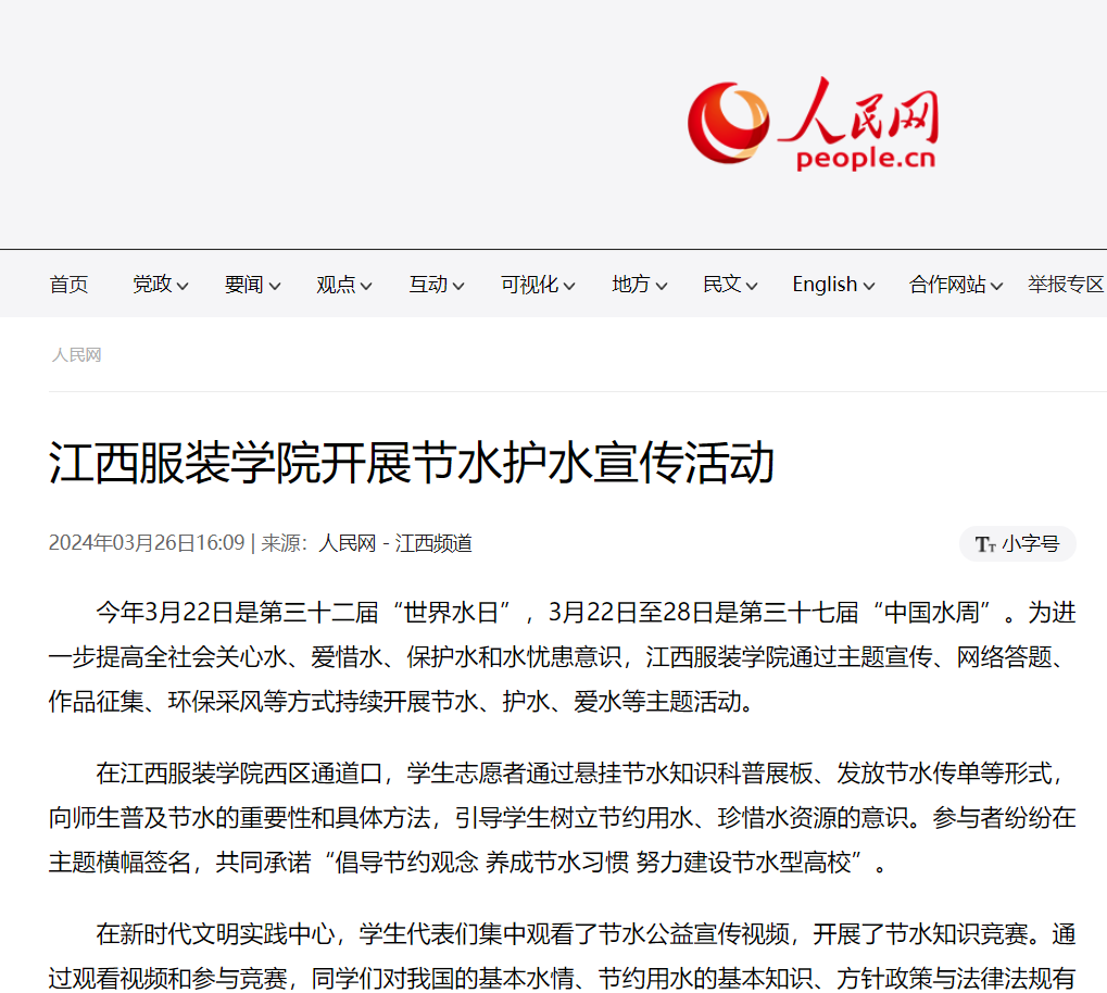下一篇中国教育在线:“世界水日”“中国水周”江西服装学院这些活动很走心