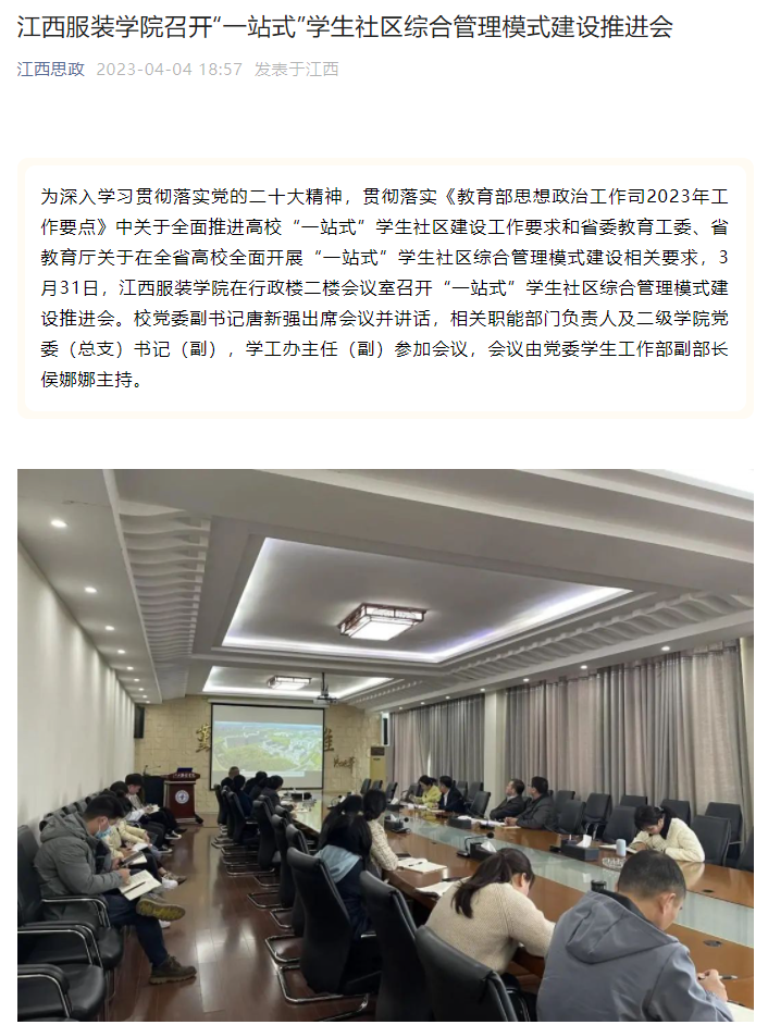 江西思政:江西服装学院召开“一站式”学生社区综合管理模式建设推进会