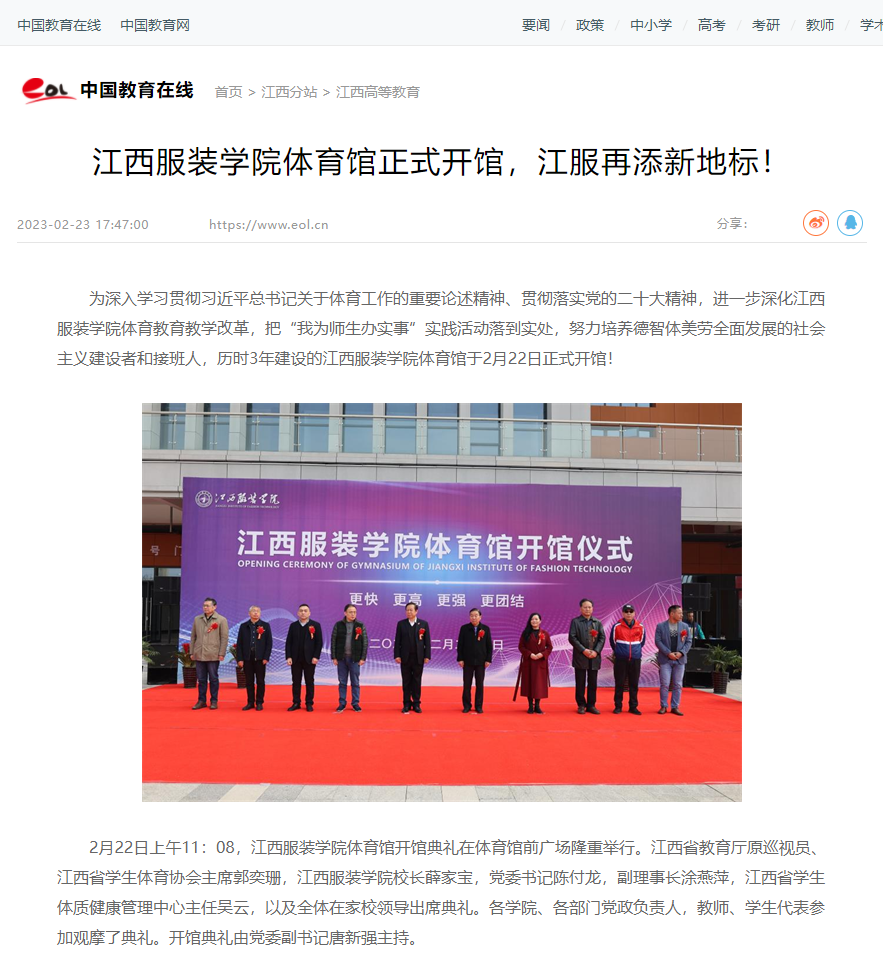 中国教育在线:江西服装学院体育馆正式开馆,江服再添新地标!