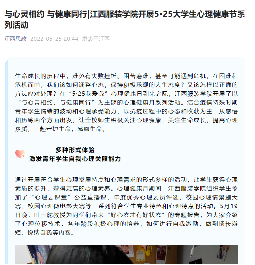 江西思政:与心灵相约 与健康同行|江西服装学院开展5·25大学生心理健康节系列活动