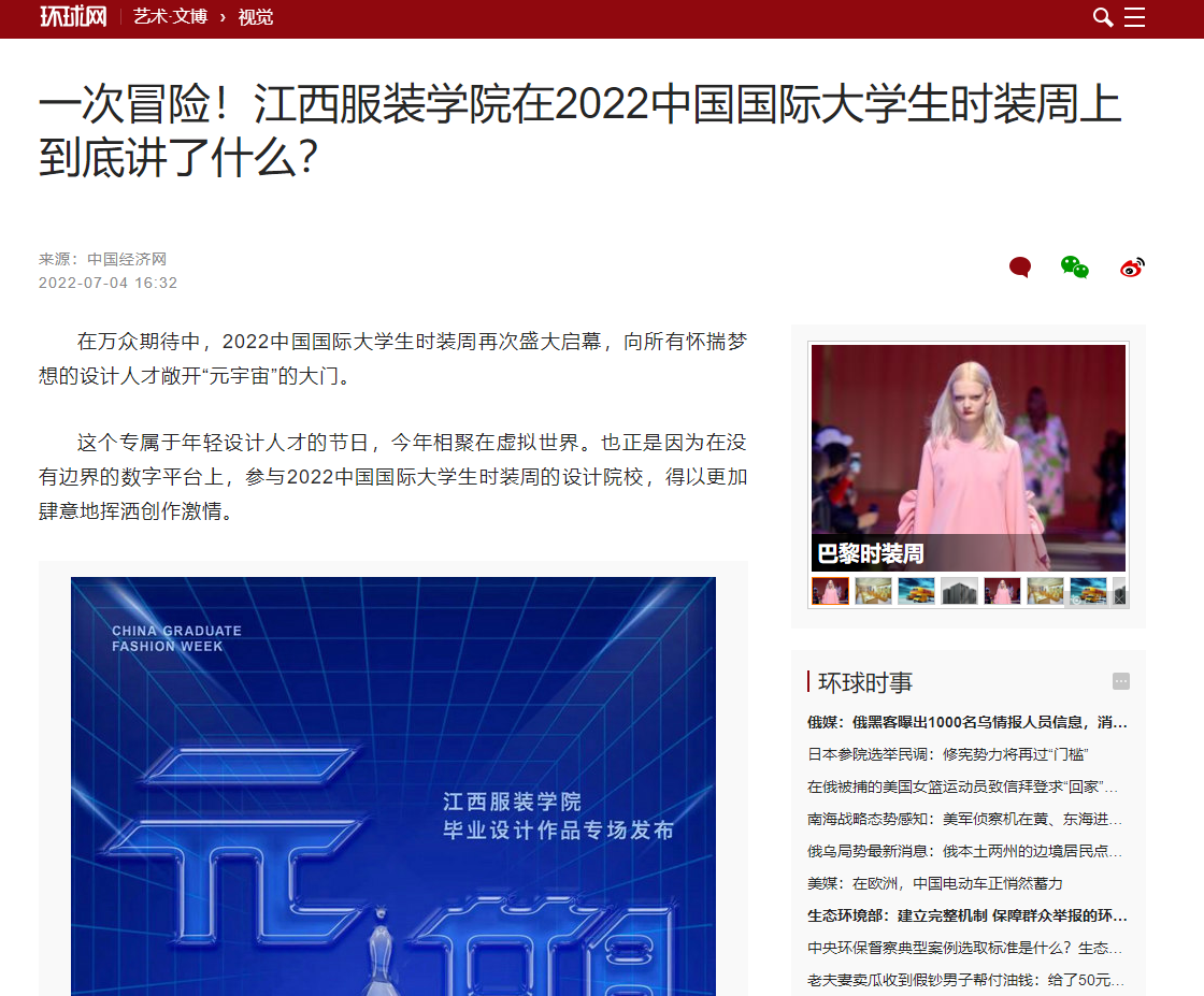 环球网:一次冒险!江西服装学院在2022中国国际大学生时装周上到底讲了什么?