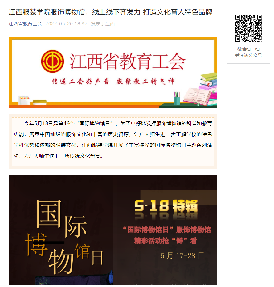 江西省教育工会:江西服装学院服饰博物馆:线上线下齐发力 打造文化育人特色品牌