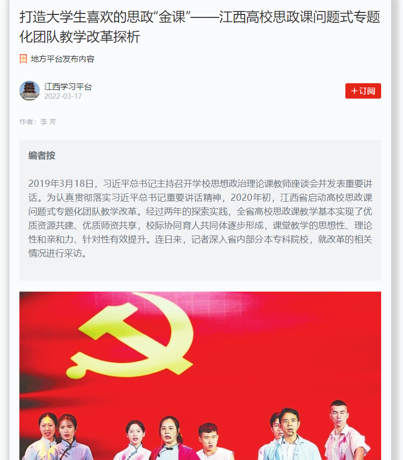 学习强国:打造大学生喜欢的思政“金课”——江西高校思政课问题式专题化团队教学改革探析