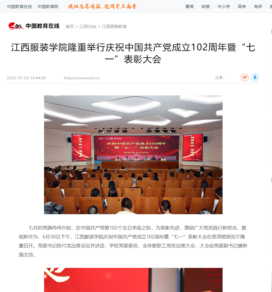 中国教育在线:江西服装学院隆重举行庆祝中国共产党成立102周年暨“七一”表彰大会