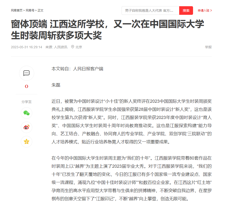 人民资讯:江西这所学校,又一次在中国国际大学生时装周斩获多项大奖
