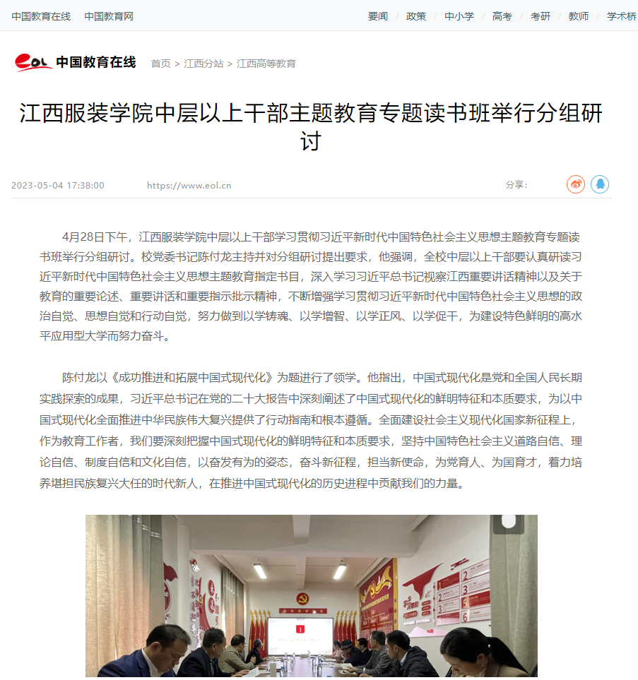 中国教育在线:江西服装学院中层以上干部主题教育专题读书班举行分组研讨